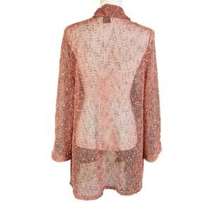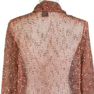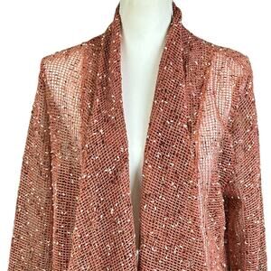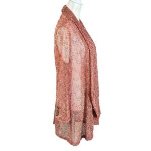 Katie Todd Cardigan Women Large Burnt Orange Mesh Knit Waterfall Open Front Top