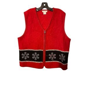 Katie Todd Women's Red Wool Knit Floral Vest XL Zip Sleeveless