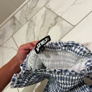 Great Condition - regarding tag that is falling off. Smocked dress with blue gingham pattern. So cute and a must have for all seasons!