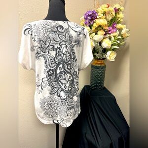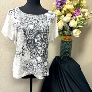 Katie’s Kloset Elegant Black and White Paisley Print Women's Top size Large