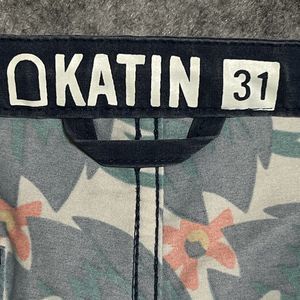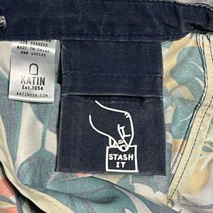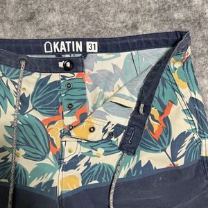 Katin Board Shorts Men's 31 Navy Blue Floral Color Block Pockets Swim Trunks