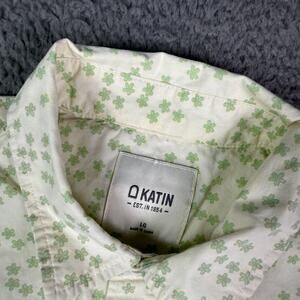 Katin Button Shirt Mens Large White Green Floral Short Sleeve Hawaiian Pocket