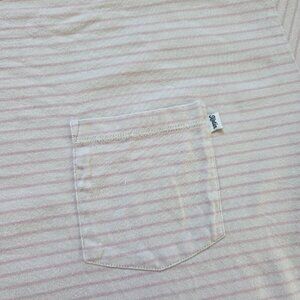 Keywords: Katin tee, striped t-shirt, pocket tee, surf style shirt, casual men’s top, beachwear, minimalist stripe tee, neutral tones, cotton shirt, relaxed fit, coastal style, summer essential, everyday tee, laid-back look, California surf brand, preppy