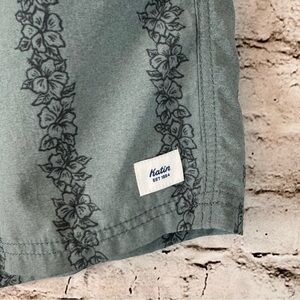 Katin Mens XL Vera Volley Trunks Blue Surf Hibiscus Floral Drawstring Shorts