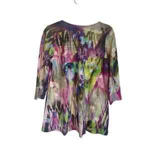 Katina Marie Green & Purple Colorful Floral Swingy Top Women's Size Small Flowy