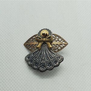 Kat's Creations silver and gold colored angel brooch.