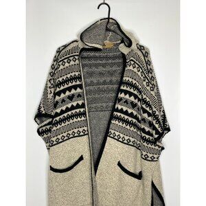 Katsumi Knit Aztec Print Poncho Longline Cardigan Cream Black Size Medium Hooded