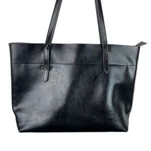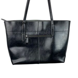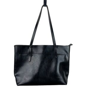 Kattee | Black Faux Leather Double Handle Tote Bag