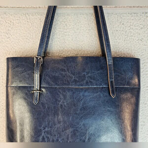 Kattee Womens Beautiful Blue Leather Large Shoulder Bag 14x15.5x5 Classic