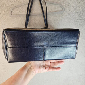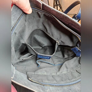 The bag has a coated finish and is made of a mix of leather and fabric materials, ensuring durability and longevity. The interior is lined and has several pockets for convenient storage of personal items. The bag is a part of the Kattee all leather purses & bags product line, and its hardware is made of metal with a silver color. This Katee shoulder bag is a must-have for women who want a stylish and functional accessory for their day-to-day activities. Great pre-owned condition