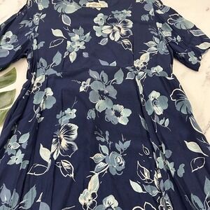 Katy D women's vintage 90s blue floral short sleeve babydoll dress, size 18. It is free from any rips or stains. It measures about 46 inches around the bust, about 38 inches around the waist and is about 39 inches long.