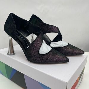Katy Perry Asymmetrical Strap Pumps - The Swerve in Velvet Pink. NIB. Size 5.5. No rips/stains/scuffs or tears. Brand new, original box/packaging. The color is called "Velvet Pink" but depending on the light these shimmer different colors. So lovely. Smoke free home. No odors. All offers are welcome. Thank you!