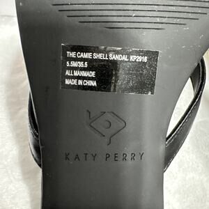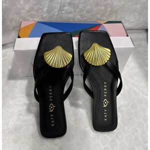 Katy Perry Camie Shell Sandals Women’s Size 5.5 Black Gold Flat Thong Cruise Vac