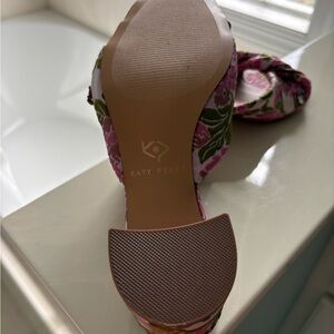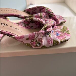 Chic floral mules with a vibrant pink and green design. Perfect for a stylish look.