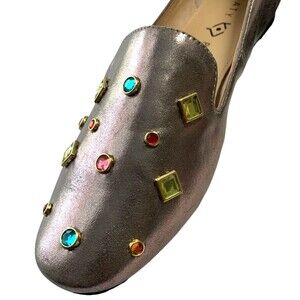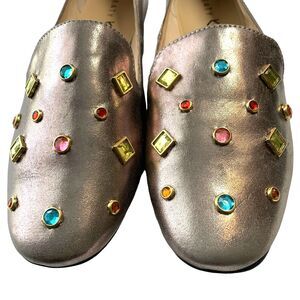 Katy Perry Colorful Rhinestone Slip-Ons Womens 8 Gold w/Multi Rhinestones