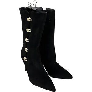 Katy Perry Ornament Pearl Button Stiletto Pointed Toe Boots Black 9M
