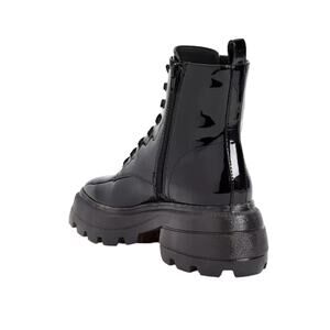A high-shine patent combat boot sits on a flexible lug sole and is armed with a not-so-secret side zip closure to have you out the door in no time.