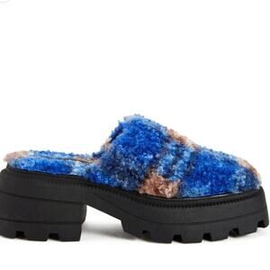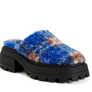 The Combat mule in Fuzzy Plaid set on a chunky lug sole brings a street-smart edge to this iconic silhouette.