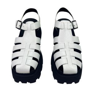 •90’s inspired fisherman sandal with a chunky heel & platform set on a combat-inspired lug sold