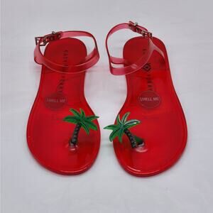 Katy Perry The Geli Thong Sandals Women 6 Red Palm Tree Slip On Shoes Casual Flip Flop