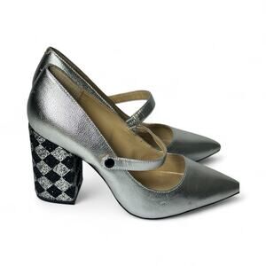 Katy Perry The June Silver Pointed Toe Mary Jane Glitter Block Heels Women's 7.5