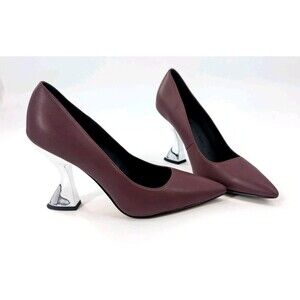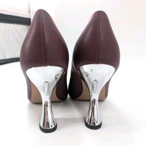 Katy Perry The Laterr Pump Bergundy Silver Pointy 4" Chunky Heels Size 6.5