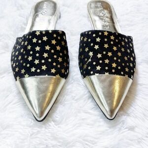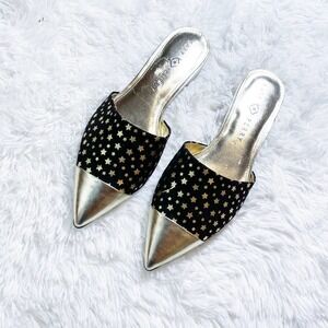 Katy Perry The Tarin Black Gold Star Pointy Toe Mules 34KP1492 SZ10
