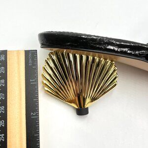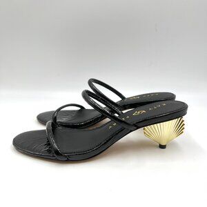 Katy Perry women's The Scalloped black and gold shell heeled dress sandals.