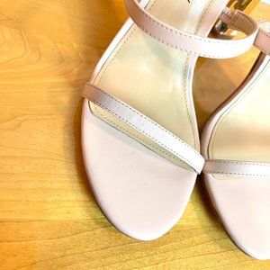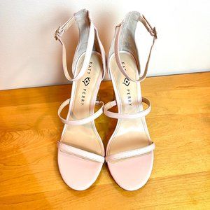 Katy Perry women's The Vilan light pink vegan leather strappy dress sandals / heels. Unique metallic chain link heels.