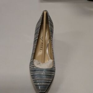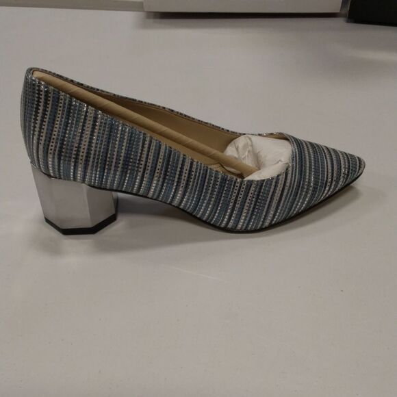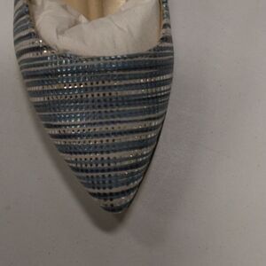 Chic heels with blue and white stripes. Perfect for stylish outings.