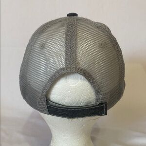 Katydid Black denim and gray distressed cap featuring an embroidered 'Trust in the Lord' design with colorful roses.