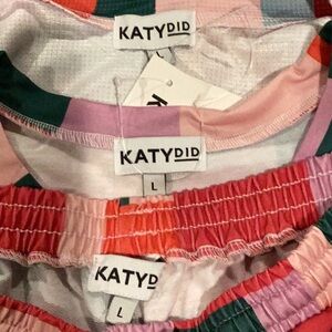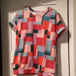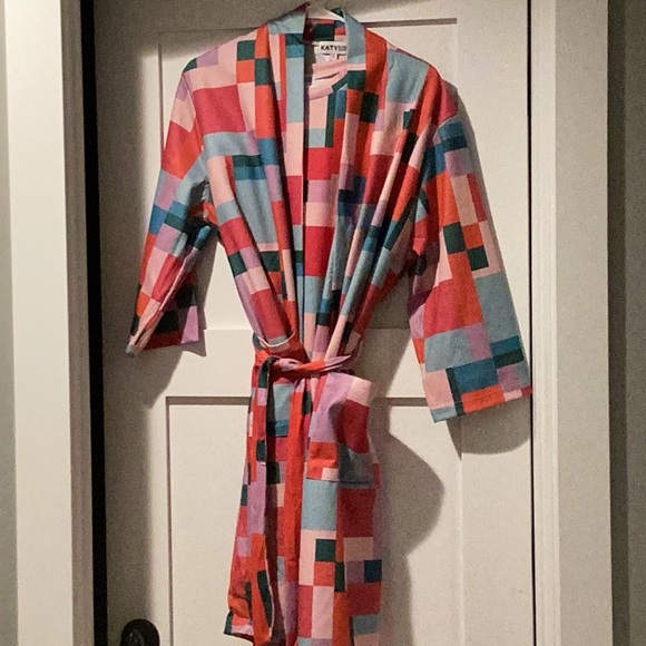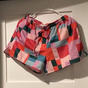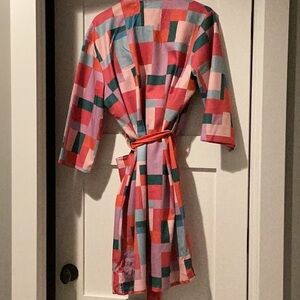 Vibrant geometric pattern. Soft and comfortable. Perfect for lounging, a gift for a new mom or just to have for you! Comes with shirt, shorts and robe. Bought from site and never wore. PTP on top is 24 and waist on shorts is 14-17.