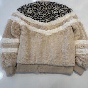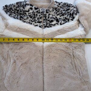 Katydid Snow Leopard Chevron Sherpa Faux Fur Jacket Size S