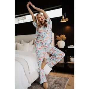 Turn up the heat on your loungewear lineup with this Traveling Matches PJ Pant Set—a boutique-ready look that’s equal parts cozy and cute. Covered in a playful matchbox print, this true-to-size set features a button-up top with a front pocket, plus comfy pants with an elastic waistband and, of course, pockets.