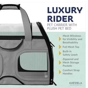 Katziela's Luxury Rider comes with a double telescopic handle and removable wheels, along with many other features to help provide versatility and long-lasting performance while falling in line with airline requirements and ensuring safety and comfort for your pet.