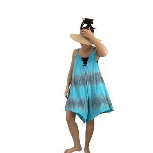 Each Mini / Short Romper is a Unique Pattern with in the Tie Dyed Colors. adjustable Shoulder Straps Front Lace Up