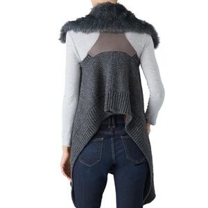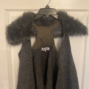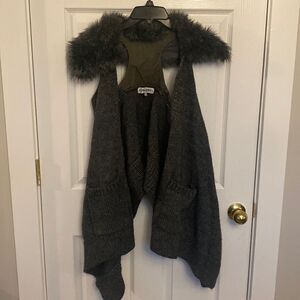 KaufmanFranco Carbon Gray Wool Alpaca Knit Sleeveless Faux Fur Collar Vest L