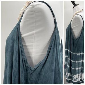 Kau wela ~ Summer polū-blue / ke`oke`o-white Rayon Material Handmade & Hand Dyed Mini Short Romper Adjustable Shoulder Straps, Scoop Neck, Lace up V Front.