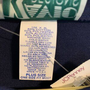 Very nice dark navy blue shirt that is new with tags. This shirt has a unique design on the front and embellishments also. Material is 50% cotton, 50% polyester. Short sleeves. Smoke free/pet free home.