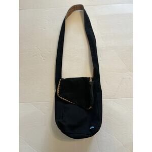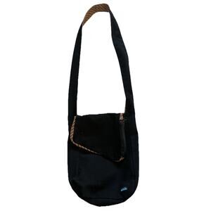 Kavu Bag 8.5x9.5 Black And Stripe Reversible 100% Cotton Canvas Flap Crossbody