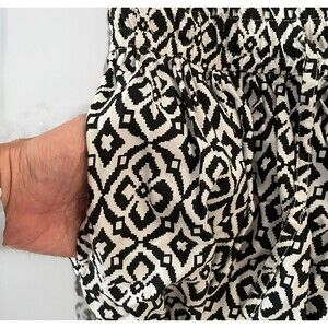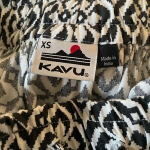 Kavu Black White Aztec Print Skirt S High Low Elastic Waist Drawstring Pockets