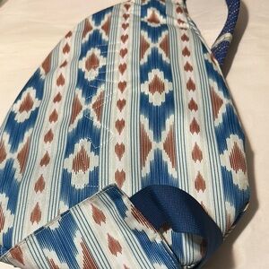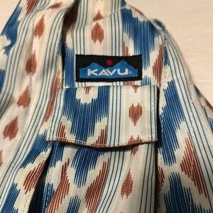 Kavu Blue and White Belt Bag with Geometric Pattern