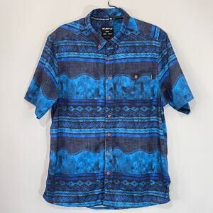 Kavu Button Up Shirt Mens Large Blue Wave Short Sleeve Klear Above Visibility
