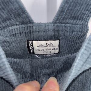 The Kavu Corduroy Overalls in youth size 14 are a stylish one-piece outfit designed for girls. Made from corduroy fabric, these overalls feature a classic overall style that is both comfortable and trendy. Perfect for everyday wear or special occasions, these overalls are sure to make a fashion statement for any young girl.