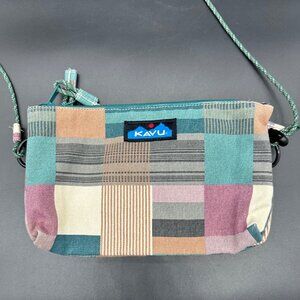 Kavu Dosewallips Double Zip Crossbody Bag Patchwork Cotton Adjustable Rope Strap