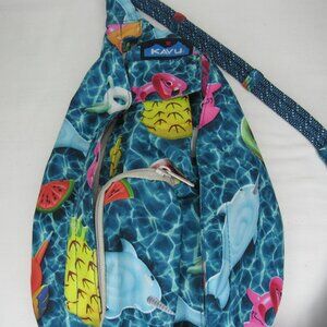 Kavu FLOAT RIOT Rope Sling Bag Blue Fish Pineapple Print