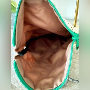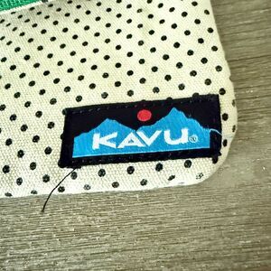 Kavu Fold Over Crossbody Bag in Cream & Black Dot with Green Accent