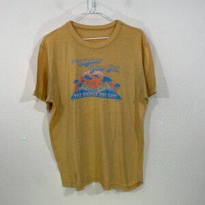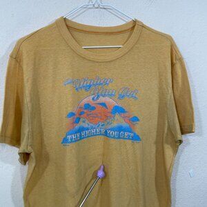 Kavu Graphic Tee Men's Size L /XL? Mustard Yellow " The Higher You Get" FLAWS!