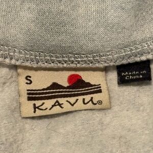 Experience ultimate comfort with the Kavu Gray V-Neck Sweatshirt/ Sweater, crafted from a soft fleece-like material. This stylish sweater features a high-standing collar and deep v-neck, perfect for keeping warm on chilly days. Its elegant gray hue and subtle brand logo add a touch of sophistication to any outfit. It’s extra long, enough to cover your backside lol, perfect for pairing with leggings. Has a few light spots, pictured.