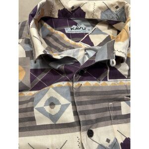Kavu Men’s Medium Camp Collar Aztec Print Tencel Short Sleeve Button Up Shirt . Condition is Pre-owned - Excellent. Shipped with USPS Ground Advantage.